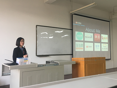 在文津楼3424 成功举办“互联网时代的新机遇”就业指导讲座。讲座由董单单老师主讲,2015级全体同学及辅导员吉晨晓参加了此次讲座。