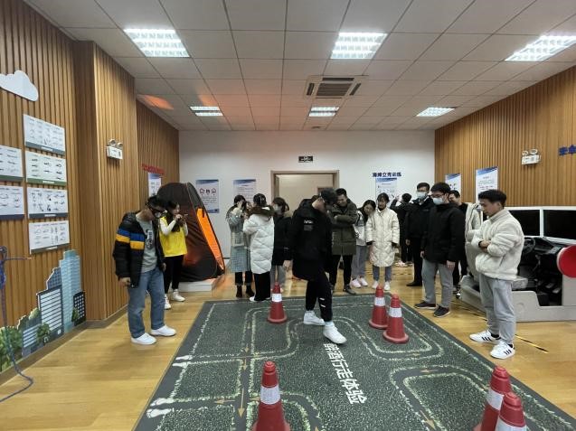 首先,体验室工作人员简单介绍了VR安全体验馆设备及场景,包括海姆立克急救训练方法、交通安全标识识别、汽车安全实训教学系统、模拟灭火实训教学系统、逃生急救结绳方法及醉酒行走体验等项目。随后,同学们在视频教学与工作人员的指导下积极体验各种安全教学项目。